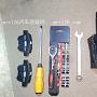 1.原车千斤顶、拆车轮螺丝护套工具、拆车轮螺丝的套筒扳手。(拆卸车轮用)2.小飞+13号套筒(拆卸刹车钳用)3.扳手(实际上没用上,原因一:15号大小的不对,原因二:并没有需要用)...